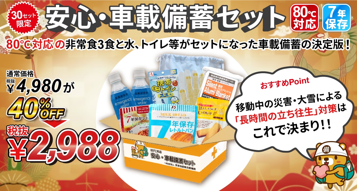 非常食:クルマで移動中の災害に備える車載備蓄