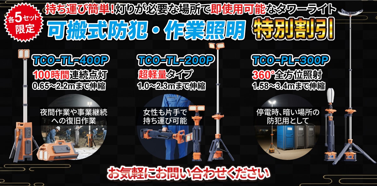 防犯・作業照明:伸縮式で高所から周囲を照らす