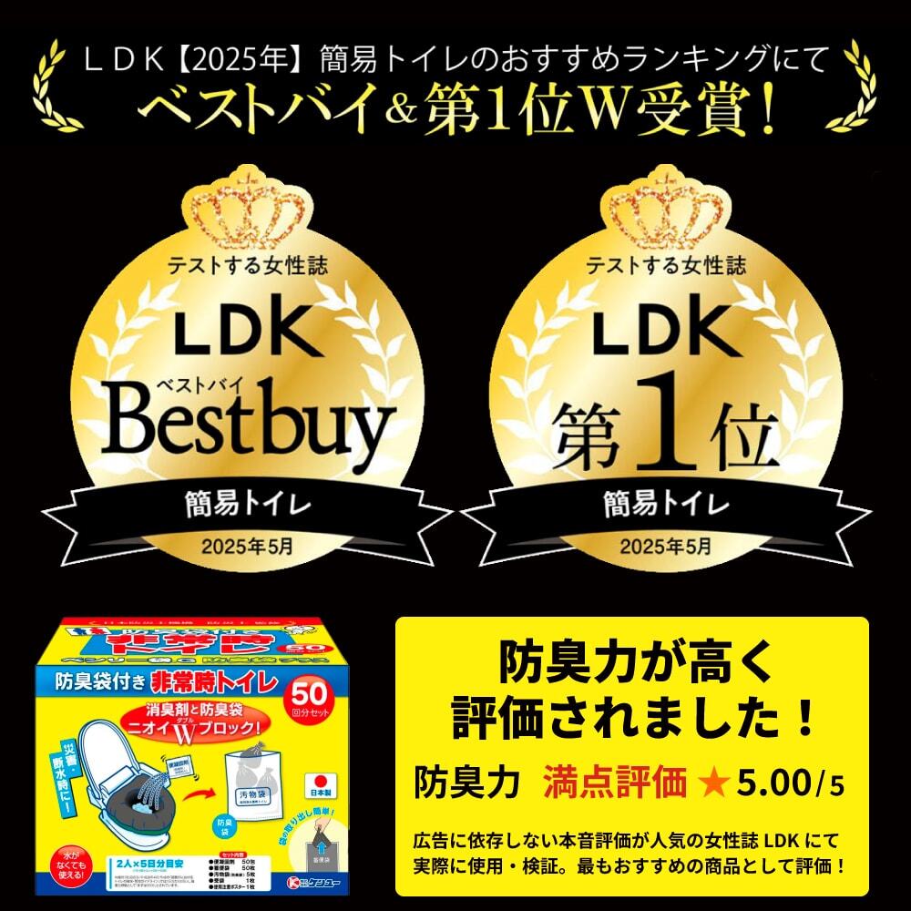 ◎日本防災士機構認定の防災士が監修。2025年のLDK(テストする女性誌)簡易トイレのおすすめランキングにてベストバイ&第1位W受賞!防臭力が高く評価された、高品質で信頼性の高い商品です。
