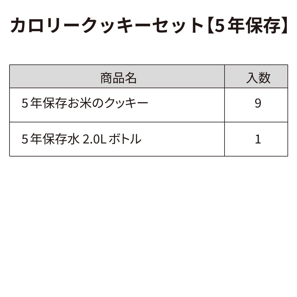 カロリークッキーセットは80℃対応の9食分食料と水2Lをコンパクトにまとめた、車に常備できるセットです。