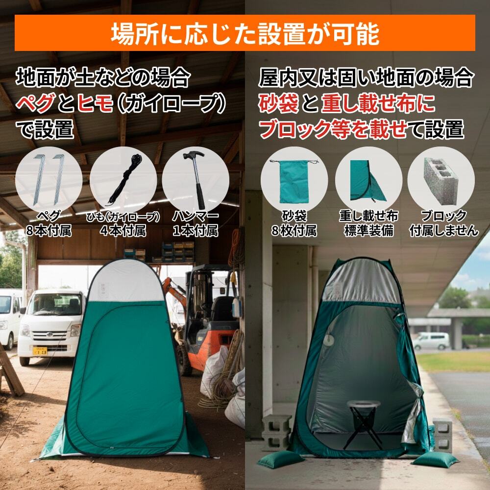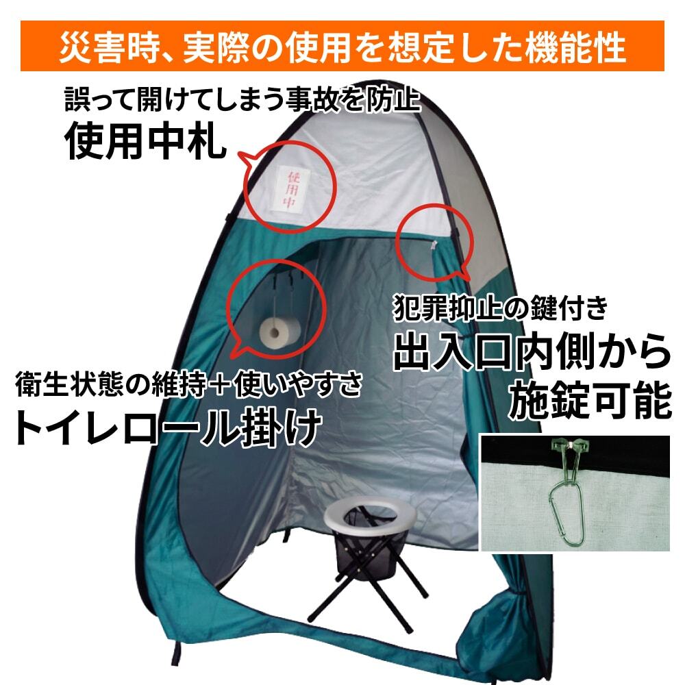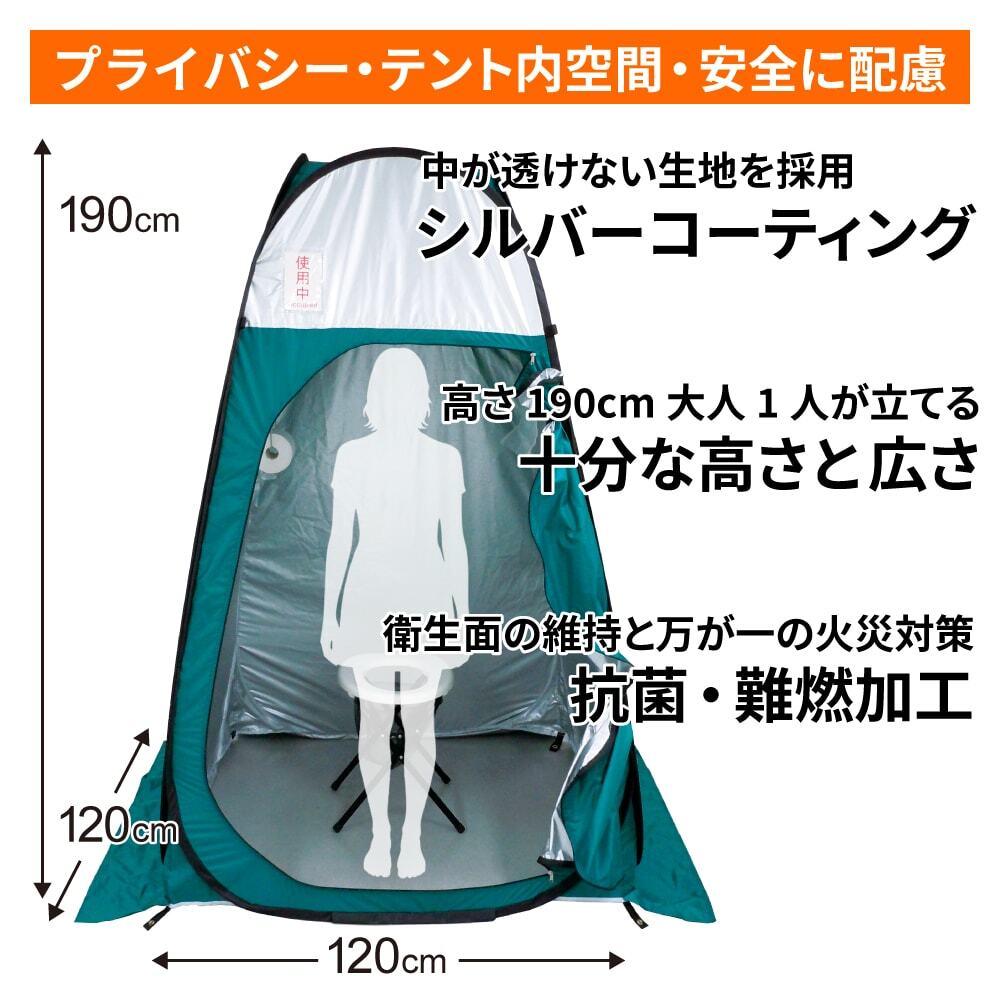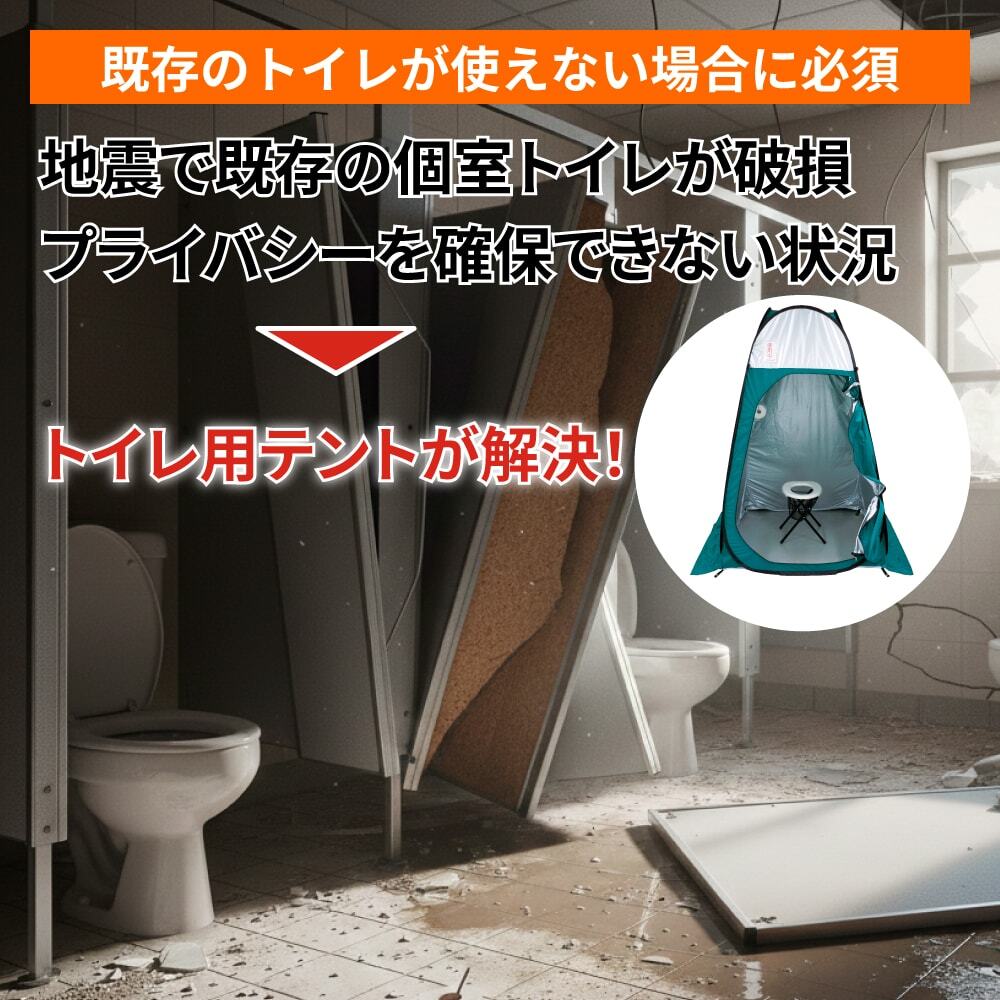 既存のトイレが使えない状況に必須!設置場所を選ばず個室トイレが作れるトイレ用テントです!