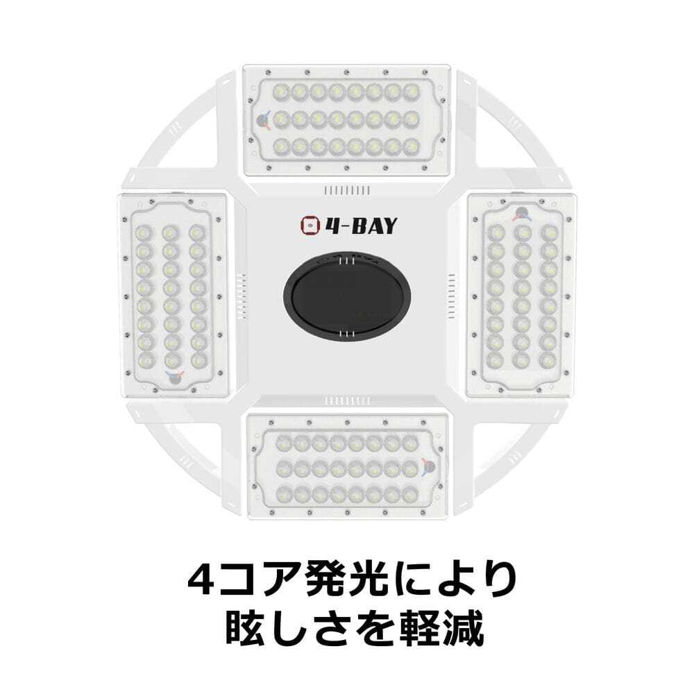 4方向にコア(照射面)を搭載し、各コアからの眩しさを軽減しています。